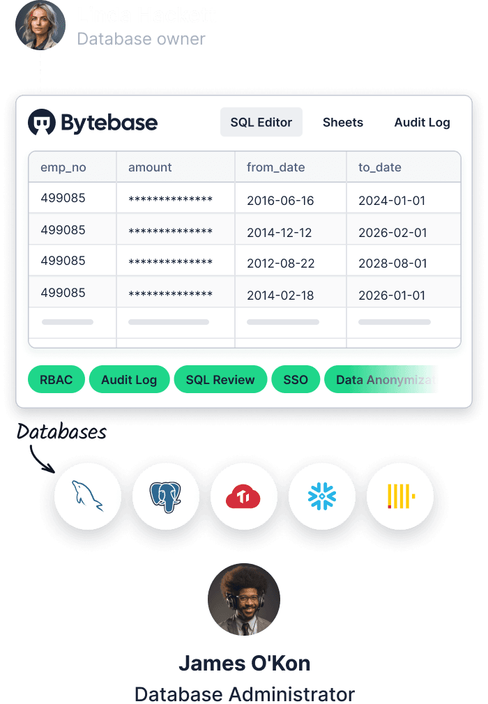 Learn moreBytebase streamlines database change deployment from non-prod to prod with review workflow, rollback, and optional GitOps integration.